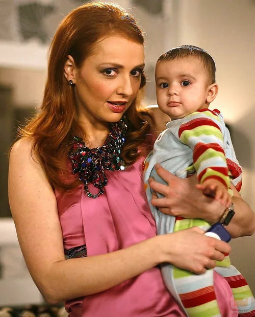 Judith (Cristina Castaño) posa con el hijo de Nines en 'El capitán salami, un cura en peligro y una diosa de la fertilidad' de 'La que se avecina'.