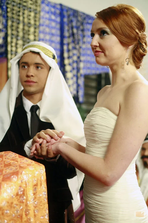 Judith contrae matrimonio con el hijo de un jeque árabe en el capítulo 'Una diva, un faisán y un piso que cuesta un riñón' de la serie 'La que se avecina'.
