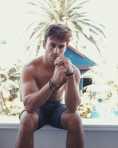 El modelo Sergio Carvajal, uno de los concursantes de 'Supervivientes 2018', posa con el torso desnudo sin camiseta.
