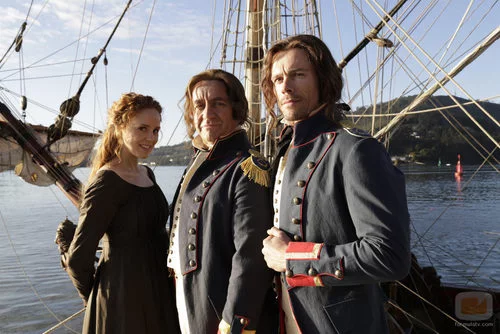 Pedro Casablanc (doctor Balmis), María Castro (Isabel Cendal) y Octavi Pujadas (doctor Salvany) en el barco de la tv movie '22 ángeles', que prepara RTVE