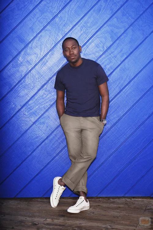 Foto promocional del actor Lamorne Morris, Winston Bishop en 'New Girl', con el pantalón marrón.