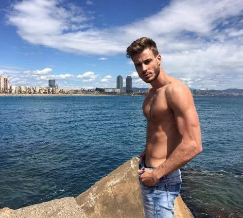El modelo de 22 años y concursante en 'Supervivientes 2017' luce abdominales en una foto casual al lado del mar.