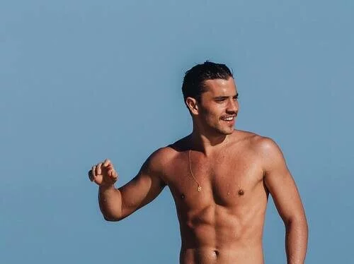 Después de darse un chapuzón en la playa, André Lamoglia se toma esta foto en la que se aprecia el agua en su torso.