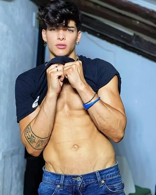 El participante del Benidorm Fest 2023 se fotografía mientras levanta su camiseta para mostrar su abdomen al desnudo.
