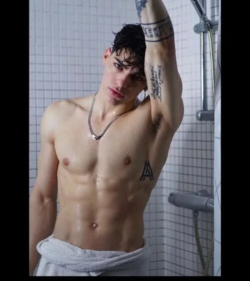 El joven que se dio a conocer en 'Fama a bailar' y fue participante del Benidorm Fest 2023 posa con una toalla en la ducha, donde muestra su musculado torso.