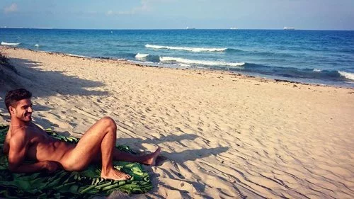El actor madrileño Maxi Iglesias ('Física o química') posa totalmente desnudo mientras disfruta del sol en la playa.