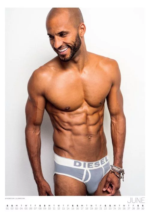 El actor Ricky Whittle posa sonriente y mostrando su escultural cuerpo y se convierte en la imagen del mes de junio de su calendario.