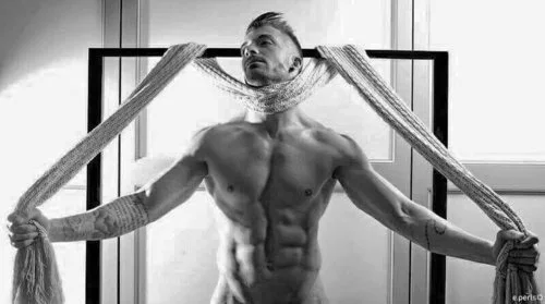 El tentador de 'La isla de las tentaciones' Rubén Sánchez muestra su lado más caliente en una sesión al desnudo en la que solo lleva una bufanda rodeándole el cuello al estilo "Cincuenta sombras de Grey".