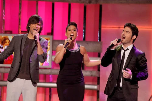 Fran Dieli, Rosa López y Jon Allende cantando en '¡Qué tiempo tan feliz!'