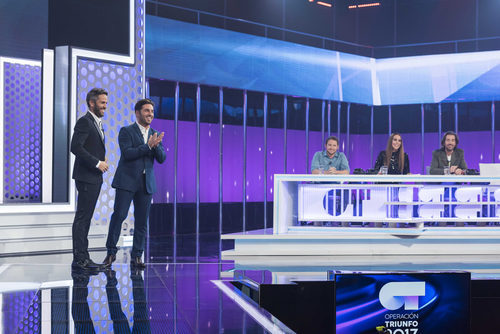 Roberto Leal recibe a David Bustamante como cuarto miembro del jurado en la gala 1 de 'OT 2017'