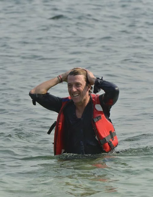 El concursante Colate Vallejo- Nágera llega contento a la isla tras su salto del helicóptero en la Gala 1 de 'Supervivientes 2019'.