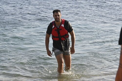 Asraf Beno llega a los Cayos Cochinos tras haber protagonizado el salto que lo convierte en concursante de pleno derecho.