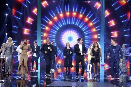 El jurado de 'Tu cara me suena 9' canta en el escenario junto a Manel Fuentes y varios exconcursantes. Todos homenajean a Raffaella Carrá.