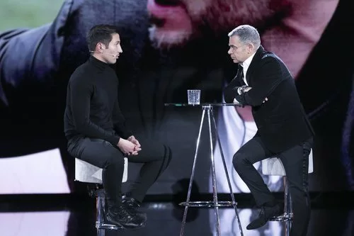 El presentador de 'GH VIP 7', Jorge Javier Vázquez, atiende a lo que dice el expulsado de la Gala 10, Gianmarco Onestini.