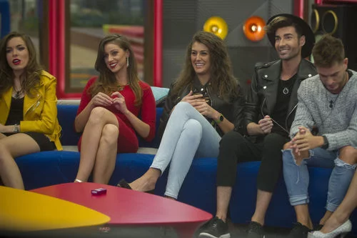 En la 11ª gala de la 17ª edición de 'Gran Hermano' Meritxell, Simona, Clara y Miguel sonríen en la conexión con el plató.