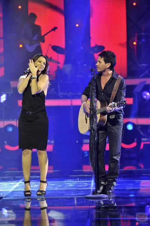 La pareja formada por David de María y Chenoa durante su actuación en la gala 12 de 'Más Que Baile'.