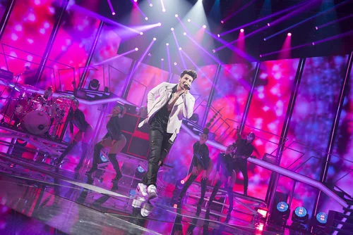 El cantante mezcla el pop latino con reggaeton y presentaba su nuevo single, "Sutra", en el plato del concurso.
