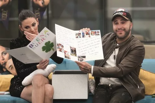 Kiko Rivera e Irene González abren su caja sorpresa y descubren en el interior dos postales gigantes dedicadas por amigos y familiares.