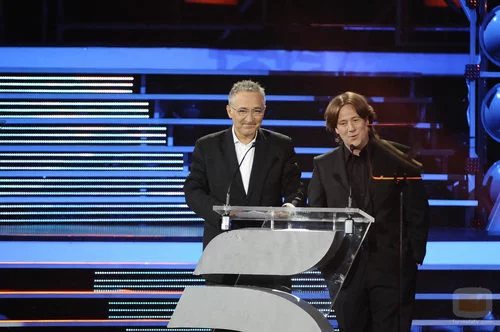El presentador Javier Sardá y el humorista Carlos Latre, en la Gala 20 Aniversario de Telecinco.