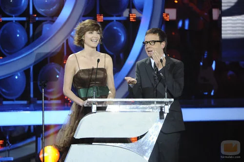 La presentadora Sandra Barneda y el presentador Ángel Llàcer, durante la gala 20 aniversario de Telecinco.