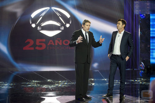 El que fuera presentador de 'El gran juego de la oca' y protagonista de la comedia 'Casi perfectos' posa junto al presentador de '¡Ahora caigo!' en la Gala del 25 Aniversario de Antena 3.