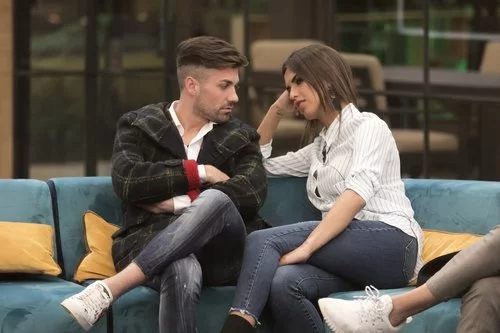 La pareja dormada por Alejandro Albalá y Sofía Suescun durante la gala 3 de 'GH Dúo' esperando en el salón de la casa.