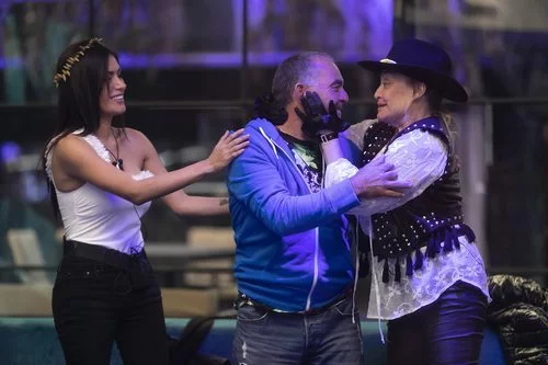 Miriam Saavedra y Aramís Fuster felicitando a El Koala después de haberse salvado, poco antes de que se conociese que Aramís sería la expulsada.