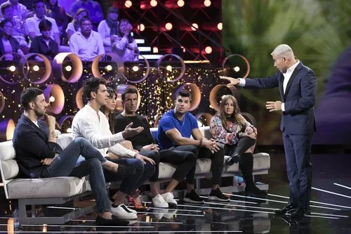 Jorge Javier Vázquez habla con algunos de los defensores de los concursantes en plató, como Diego Matamoros, en la quinta gala de 'GH VIP 7'.