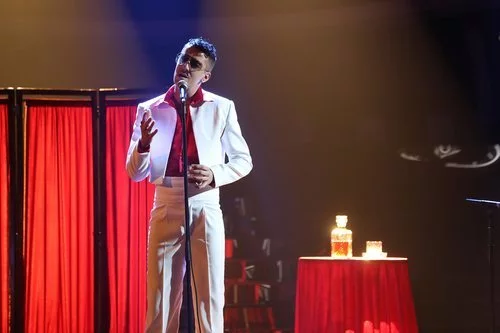 El actor e invitado Víctor Palmero interpreta a C. Tangana y su tema "Un veneno" en la Gala 5 de 'Tu cara me suena 8'.