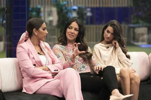 Noemí Salazar, Irene Junquera y Estela Grande, en el salón de la casa de 'Gran Hermano VIP 7', durante la celebración de la Gala 6.