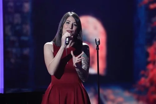 La cantante Bely Basarte interpretando "Un beso y una flor" en la sexta gala de 'La mejor canción jamás cantada', dedicada a los años 70.