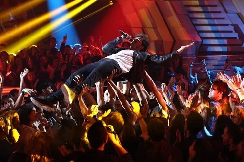 El artista se lanza al público como parte de la actuación en la cual interpretaba "We Can Dance", un tema de The Vamps.
