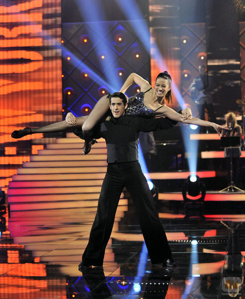 De riguroso negro, el tonadillero Víctor Janeiro baila un broadway en la novena gala de 'Más que baile'.