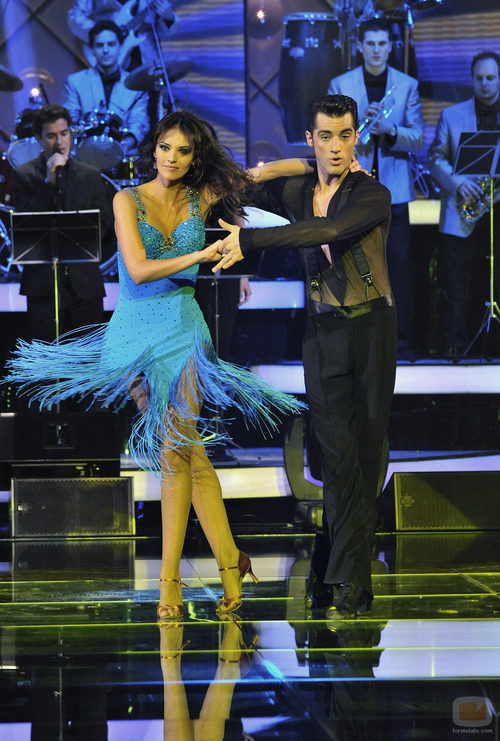 Con un vestido de color azul turquesa de tirante ancho, la modelo Helen Lindes bailó un chachachá en la gala 9 de 'Más que baile'.