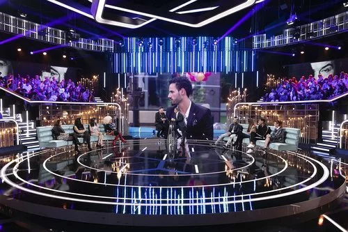 Algunos de los concursantes expulsados, Ángel Garó que acababa de salir de la casa, con el presentador y varios defensores de concursantes que aun están dentro en el plató de 'Gran Hermano VIP'.
