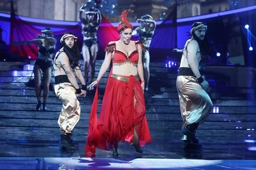 Anabel Alonso, concursante de 'Tu cara me suena', imita a Chenoa e interpreta la canción "En tu cruz me clavaste" en la novela gala del concurso.