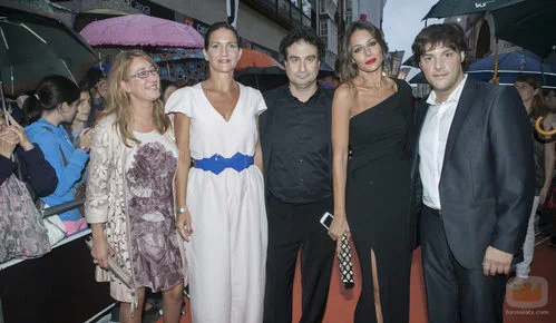 Pepe Rodríguez, Samantha Vallejo-Nágera y Jordi Cruz, de 'MasterChef', junto a Eva González acuden al FesTVal de Vitoria para recoger el premio Pasión de Críticos 2013 a Lo Más Interesante.