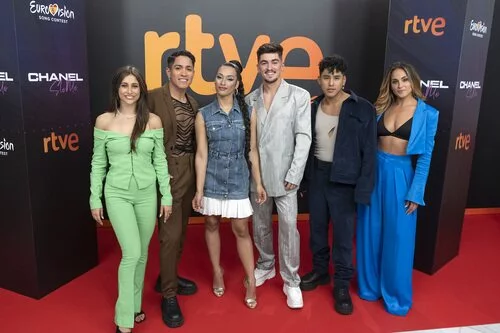 Chanel Terrero, junto a sus bailarines Exon Arcos, Josh Huerta, Pol Soto, Raquel Caurín y Ría Pérez en su gala de despedida, donde interpretaron "SloMo", canción que defenderán en Turín en Eurovisión 2022.