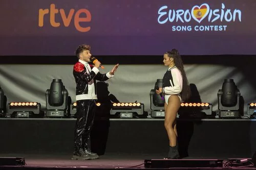 Chanel Terrero, en el escenario junto a Blas Cantó en el evento celebrado con motivo de su despedida antes de partir a Italia.