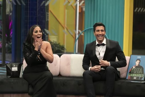 Anabel Pantoja y Gianmarco Onestini, muy sonrientes en la final de 'El tiempo del descuento'