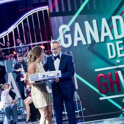 Jordi González le da a Alyson Rae Eckmannn el maletín en la gala final de 'GH VIP 5'