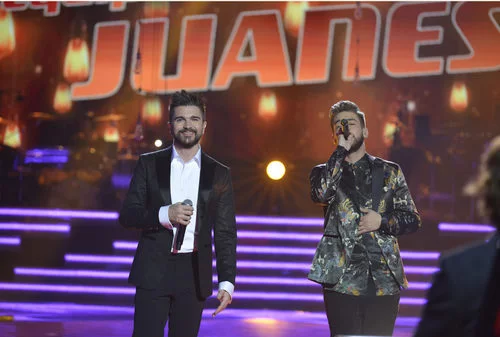 Juanes y el elegido de su equipo, Pedro Hernández, actuando juntos en la final de 'La Voz 5'.