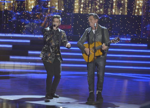 Pedro Hernández y Alejandro Sanz cantando en la final de 'La Voz 5'