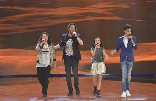 Manuel Carrasco con los finalistas en la final de 'La Voz Kids'