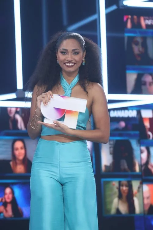 Nia sostiene su trofeo que le acredita como la ganadora de 'Operación Triunfo tras triunfar con el 45% de los votos.