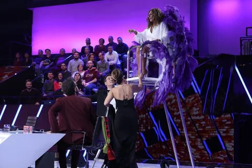 La cantante se subió a un trono con plumas moradas en la gala final de la sexta edición de 'Tu cara me suena'.