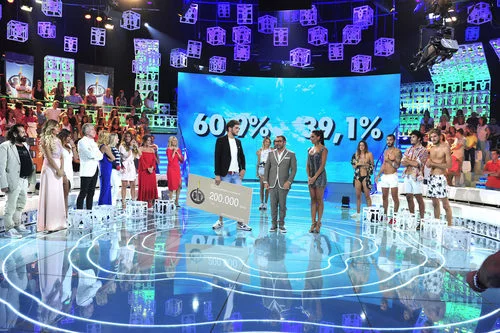 Lara Álvarez, el ganador del año de la edición de 2016 Jorge Díaz y Jorge Javier Vázquez en el plató del concurso, momentos antes de hacer entrega del premio.