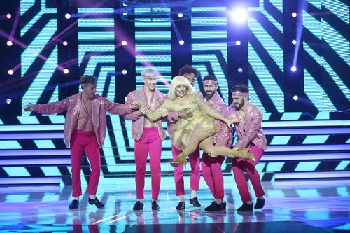 Yolanda Ramos imita a la cantante Raffaella Carrá en la gala final de 'Tu cara me suena 5'