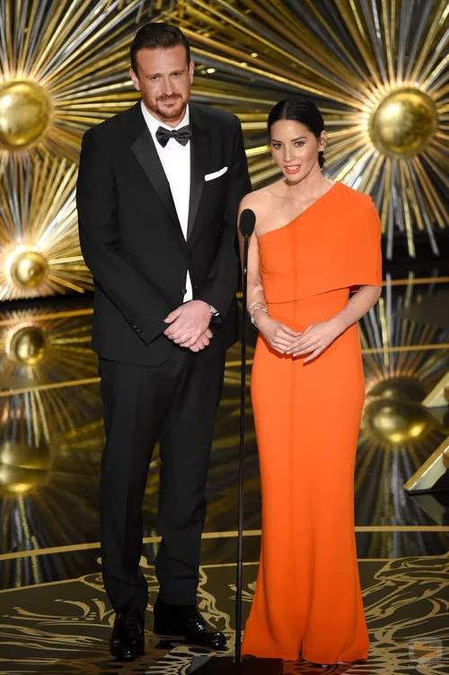 Jason Segel y Olivia Munn en la gala de los Premios Oscar 2016