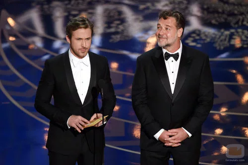 Ryan Gosling y Russell Crowe en la gala de los Premios Oscar 2016